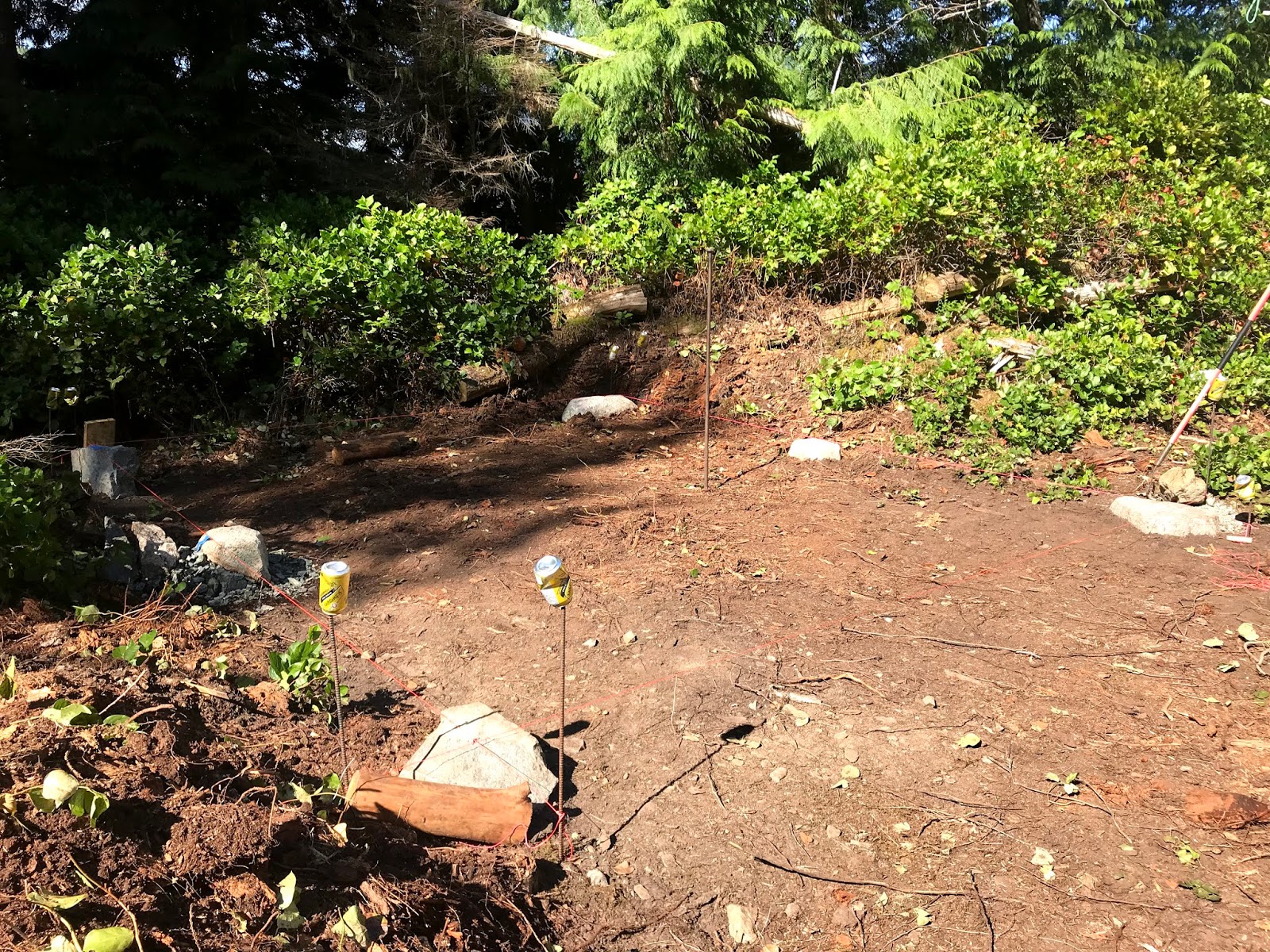 I had about a week by myself before Jeff Wilson was arriving, so I spent the time on two major tasks: create a trail from the dock to camp and complete more of the cabin siding. While the sun dried the cedar siding, I spent hours cutting branches, cutting and digging out salal, filling and grading the dirt. Coming up from the dock, the first three steps are steep and especially difficult with heavy coolers. Once past these steps, the trail has a very pleasant easy route into the camp. This trail was first started by Henry and Andy about a year ago. I appreciated their initial trailblazing while working to finish the path. I made slow but steady progress on the siding - finished the west side and started on the back.